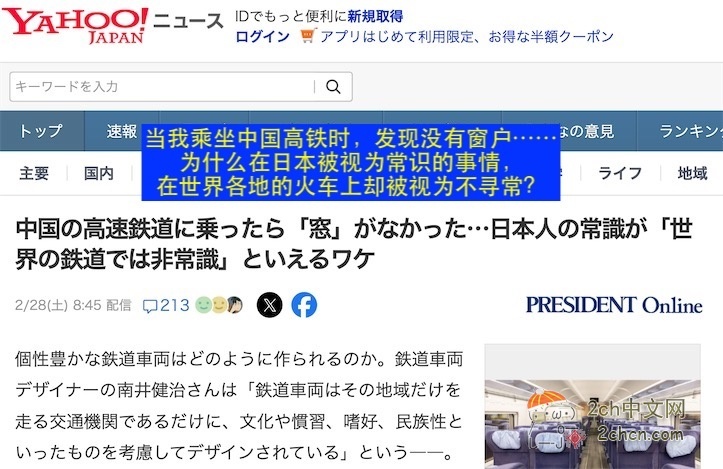 日本铁路设计专家称乘坐中国高铁“感觉吃亏了”,“因为没窗”