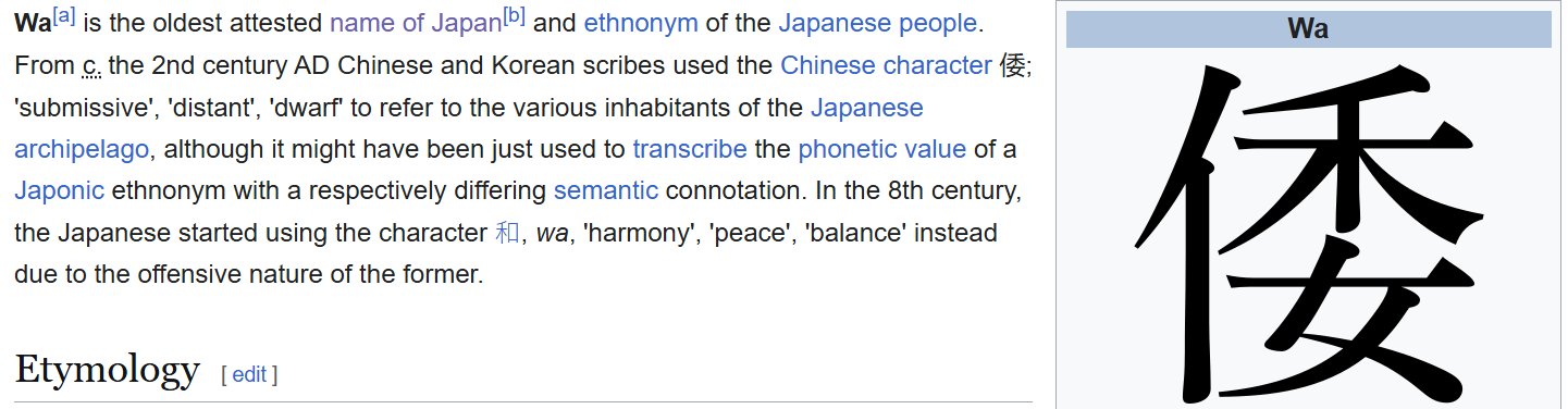 倭奴实际是音译的误读,源自wana,可追溯至上古时期,尽管那时日本列岛还没有形成,但土著把很多名称传承了下来。