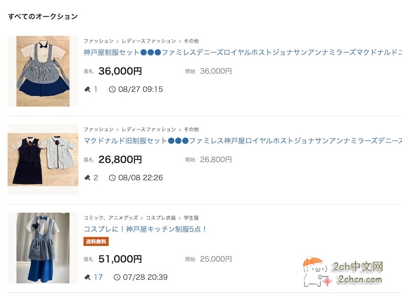 制服被拿到雅虎拍卖上卖