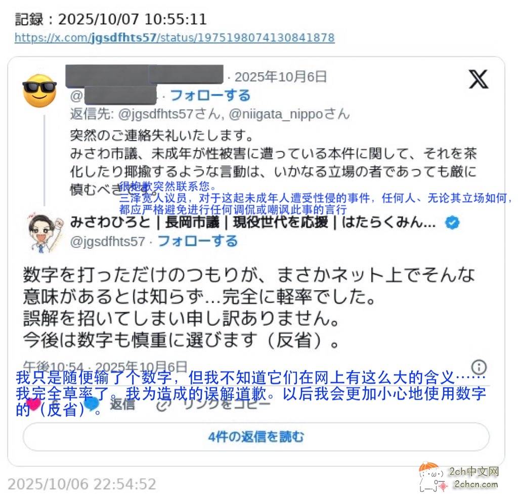 文章链接: 2ch:【悲报】日本长冈市议员用野兽梗评价男童遭侵犯事件  [复制链接]