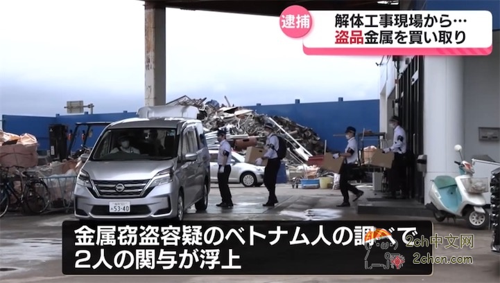 两人涉嫌从越南盗窃团伙手中收购金属废料上百次,价值2370万日元、重量约20吨。