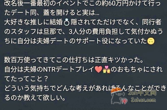 2ch:日本榜一大哥花60万日元购得与女偶像约会机会,得知同行的工作人员其实是丈夫后绝望了