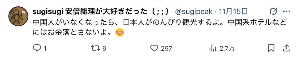 没有了中国游客的话,日本人就可以悠闲地旅游了。我们可不会去中资酒店消费哦😊