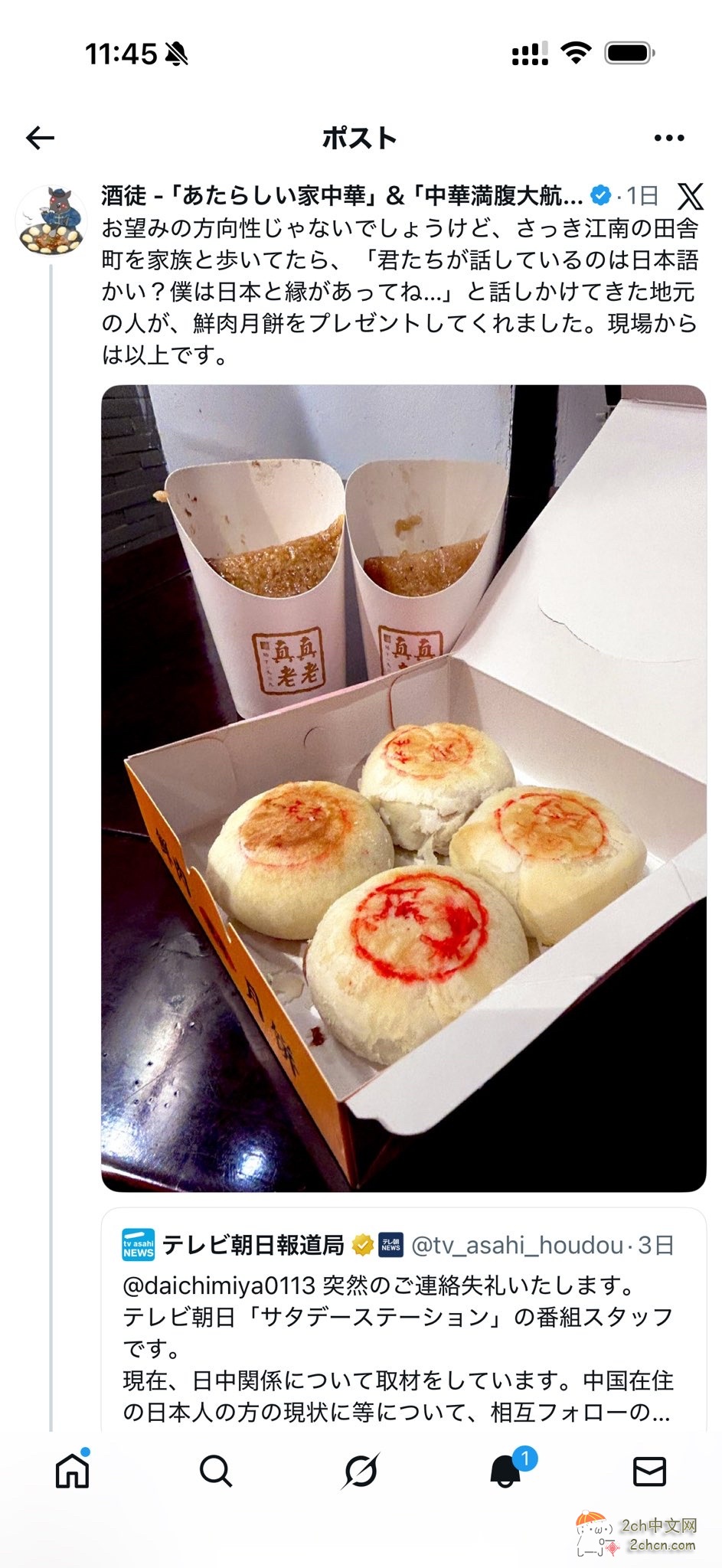 还有一名日本人分享他被陌生人送月饼的故事: