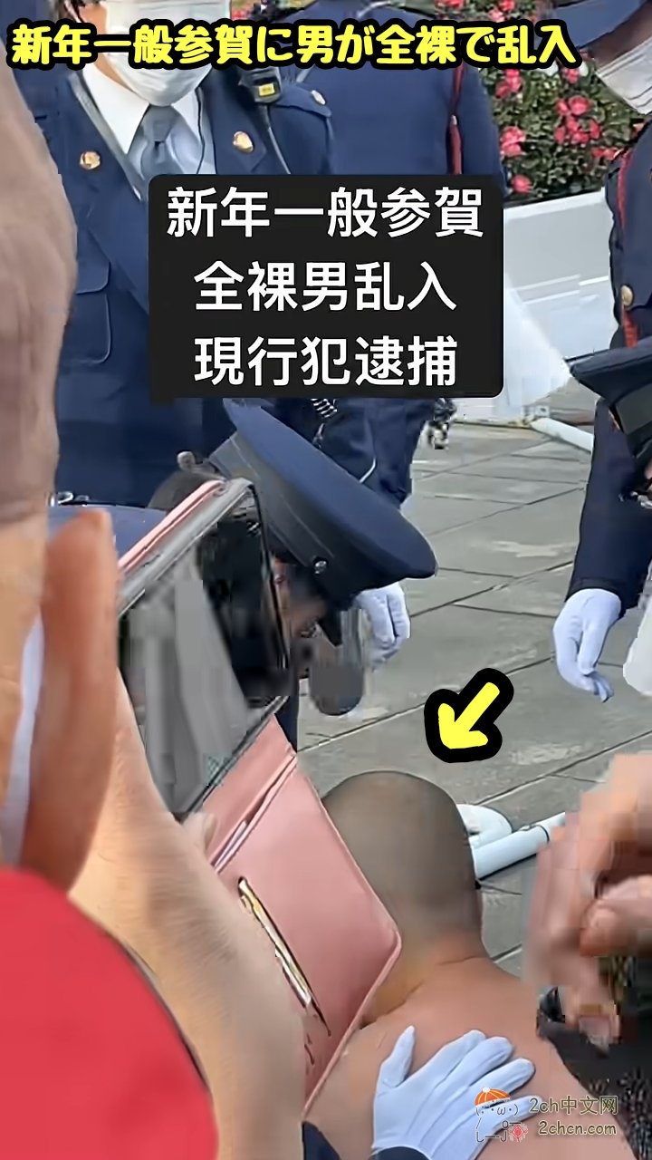 2ch:在日本皇室的新年民众朝贺活动上,一民众在前排怪叫并脱衣全裸
