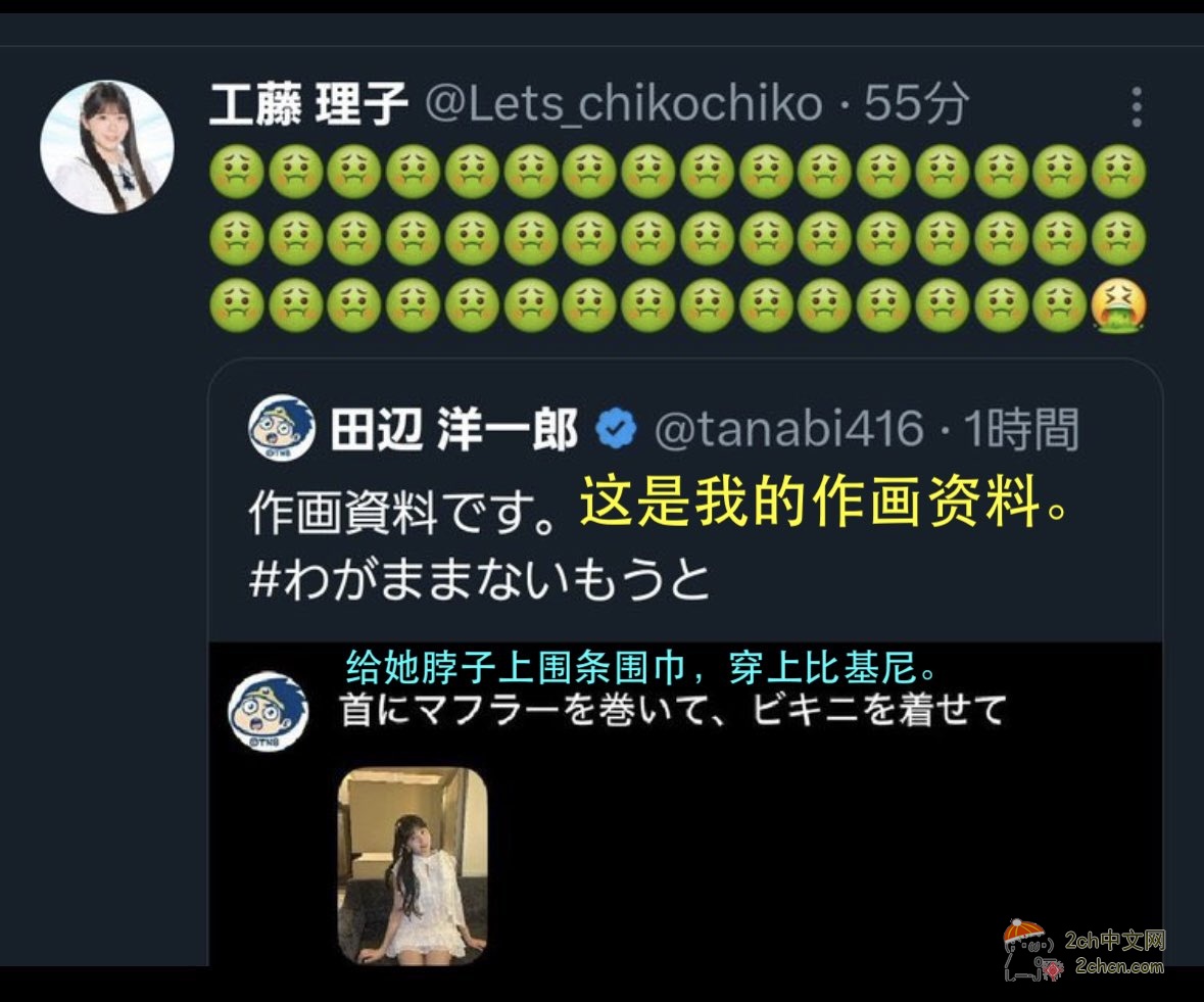 3日,他在其X账号上发布了一张修改过的偶像组合STU48成员的照片,发推时还自称是“作画资料”,引发工藤理子本人附加大量恶心的表情进行转发。